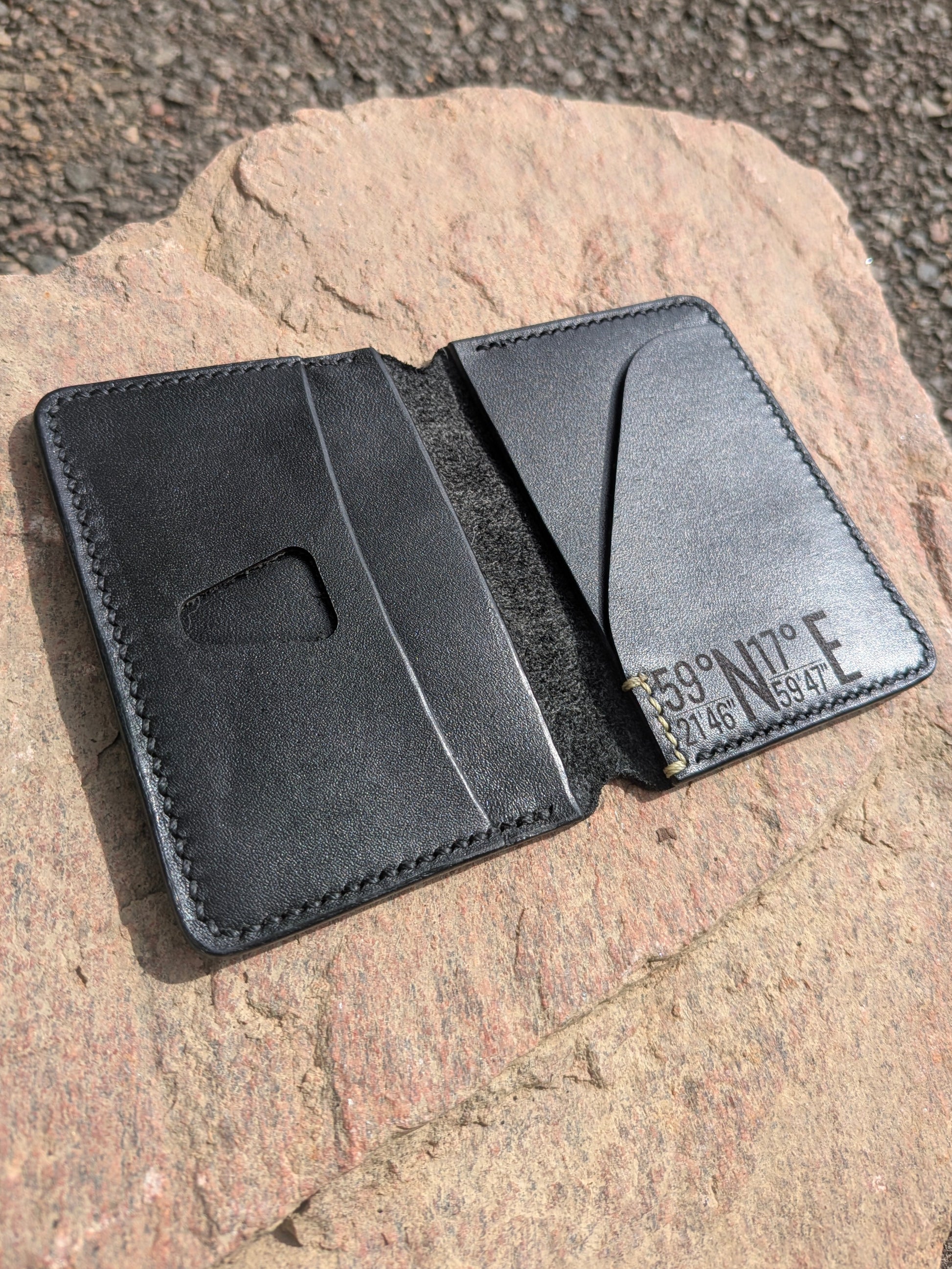 Varje plånbok är tillverkad av mig för hand av noggrant utvalt natur garvat läder från Sverige som bara blir vackrare med tiden. Lädrets naturliga karaktär och den fina handsydda sadelmakarsömmen vittnar om ett gediget hantverk. Den är designad för att vara både funktionell och hållbar, med gott om plats för kort och sedlar.